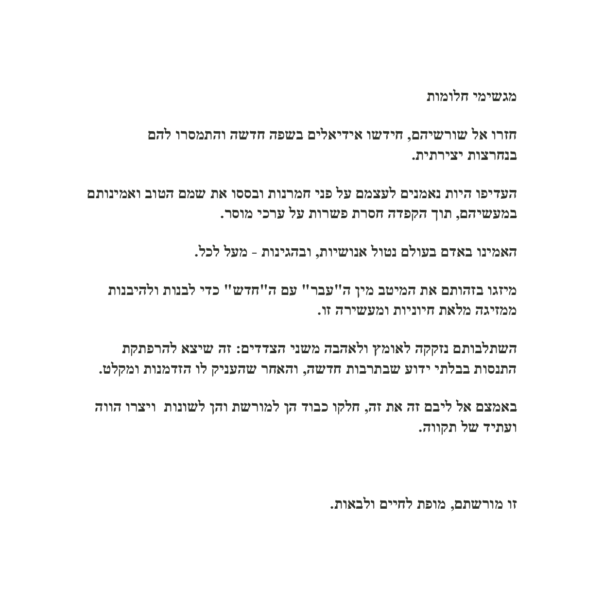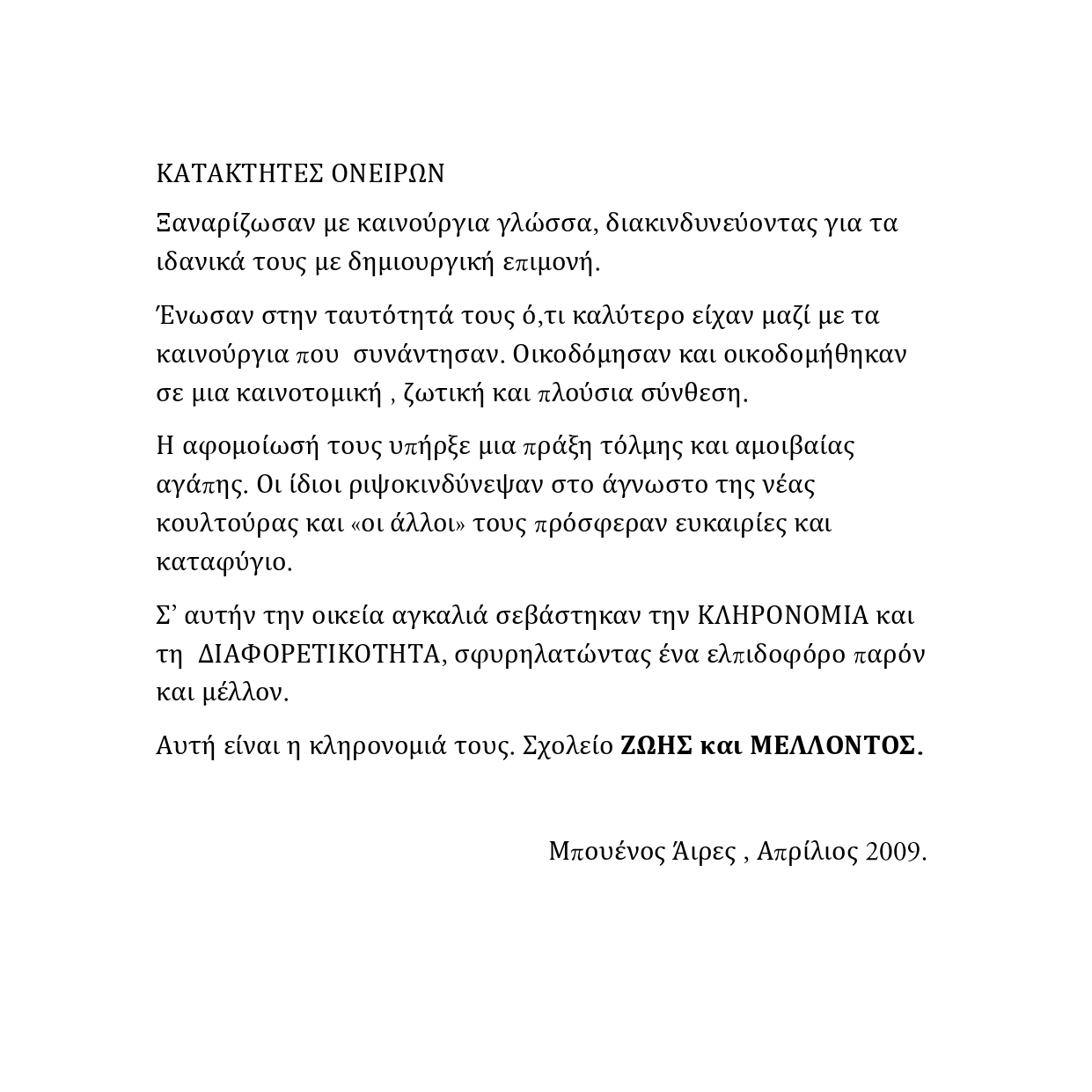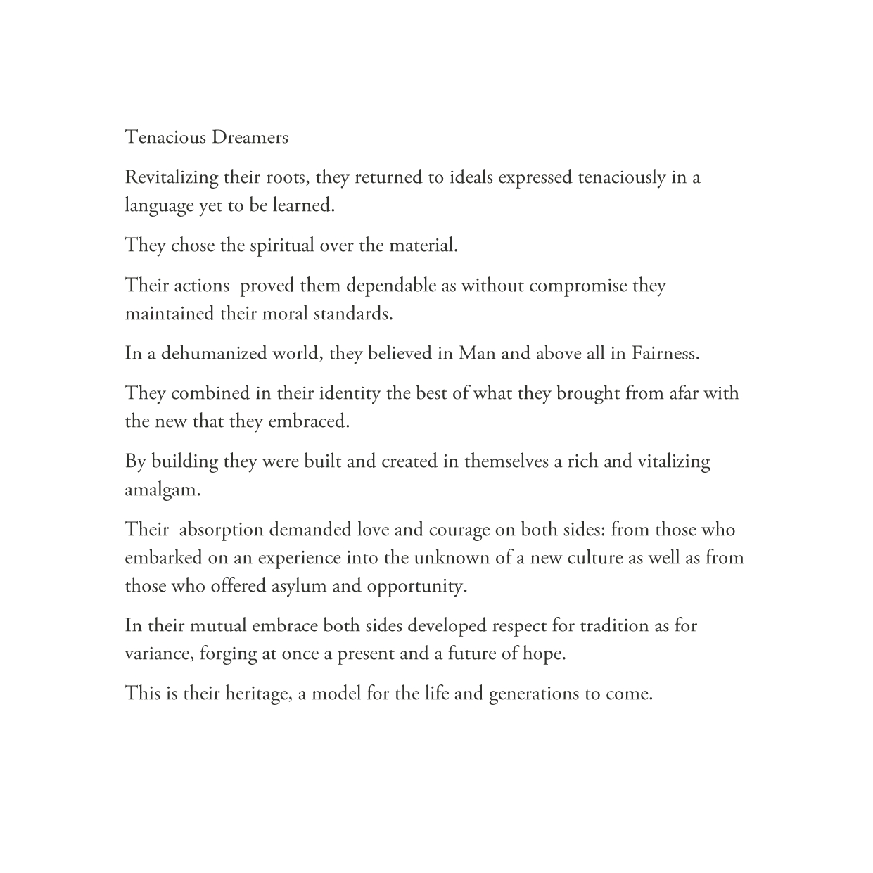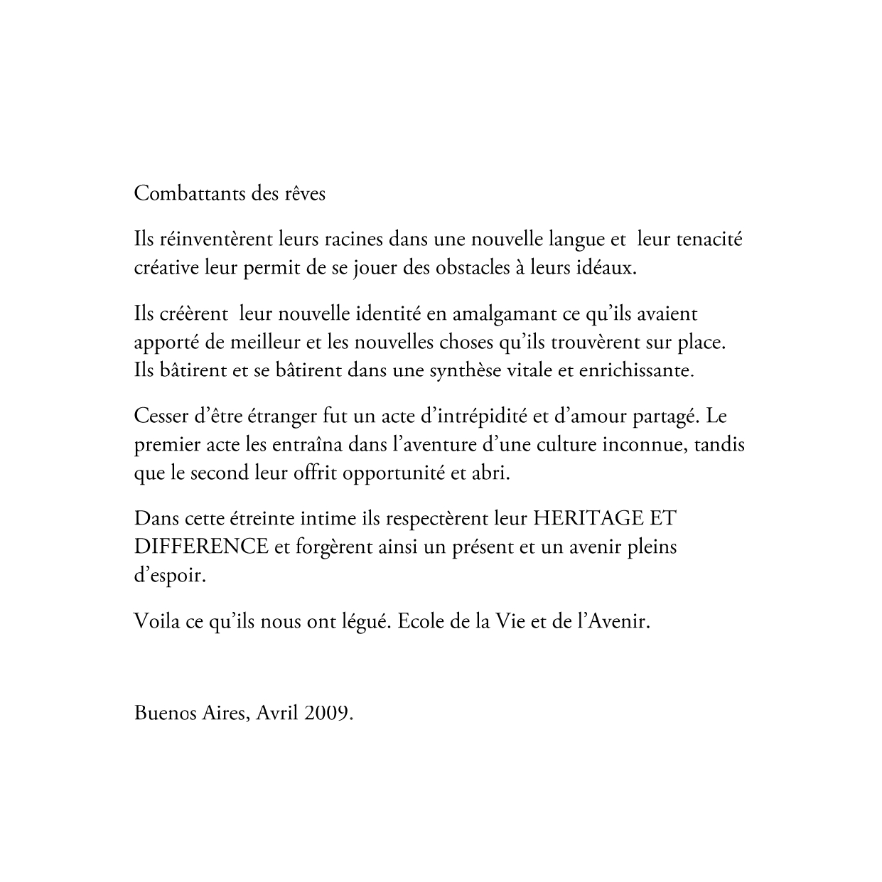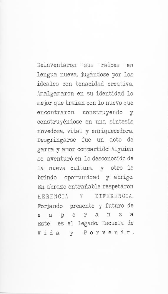 Por tercera vez - y siempre variando el enfoque de la cuestión - las hermanas Rut y Silvia Rubinson abordan el tema de la inmigración. Pero en esta oportunidad la propuesta es visualmente sinfónica. En ocasión del bicentenario de nuestro país esta exposición es un gran homenaje a aquellos que - como ellas han escrito - “reinventaron sus raíces en lengua nueva, jugándose por los ideales con tenacidad creativa”. (...)