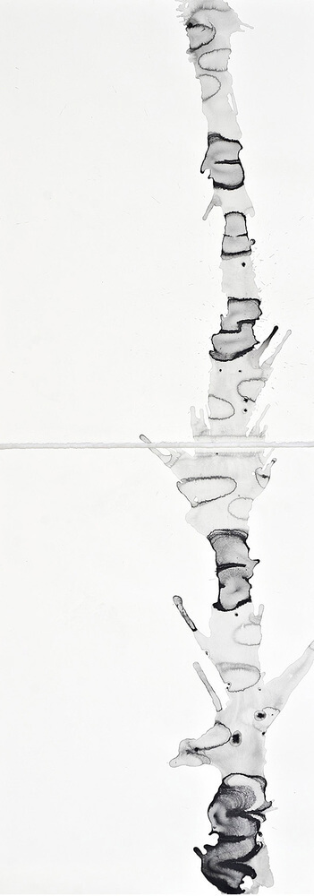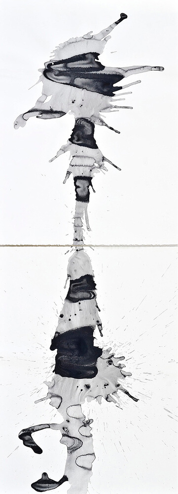 “Teatro de sombras”, así denomina Silvia Rubinson esta exposición porque, tal como sucede en ese género, las sombras son verticales en lugar de horizontales u oblicuas. Pero en realidad en este caso muchas “sombras” están invertidas -como negativo de ellas- al tratarse de blanco sobre negro. Lo que llama la atención en estos “organismos” que presenta es su vitalidad. (...)